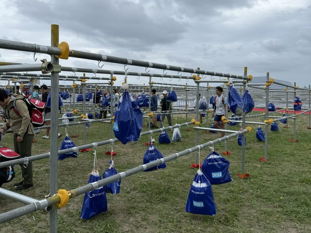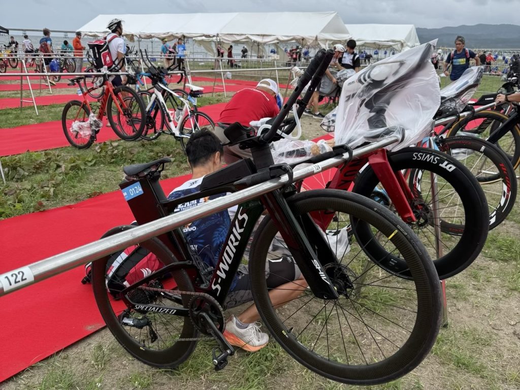 ランスタートのトランジション2は別の場所で、ランギアバッグはレース当日預けもできるのですが、バイクコースの下見も兼ねて自分たちでセッティングへ。