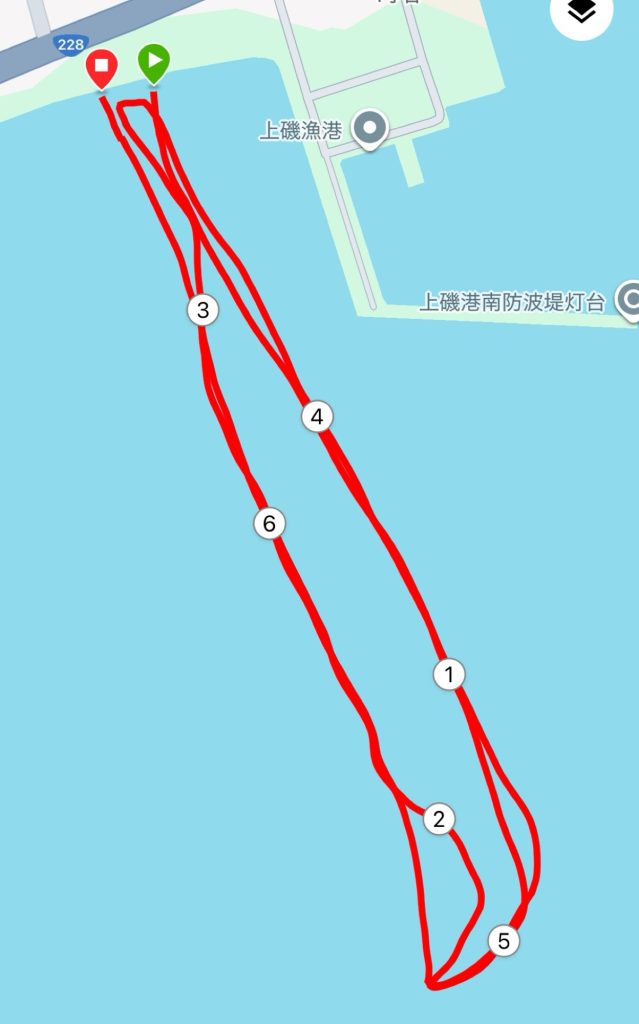 2つの赤いブイを時計周りに2周回まわって3.8kmのコース。