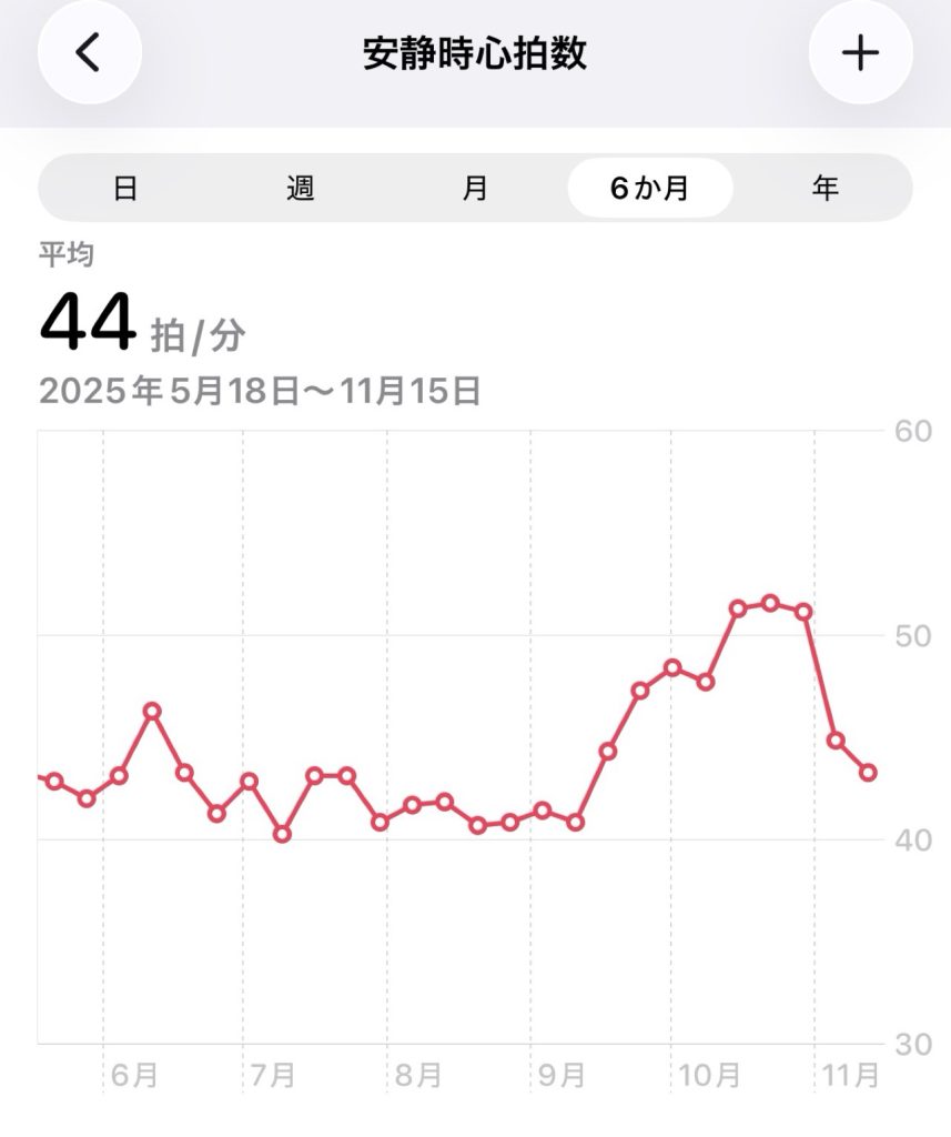 「安静時心拍が下がってます」とスマホからメッセージが来ました。