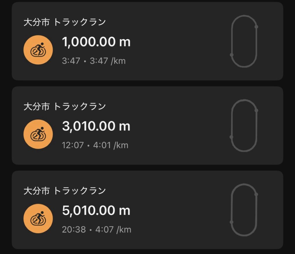 夜は水曜ラン練習会に参加して、5km→3km→1kmのインターバル。