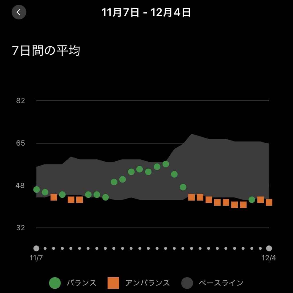 予定通りトレーニングできているのはいいのですが、HRVステータスはお疲れのサインが継続中。