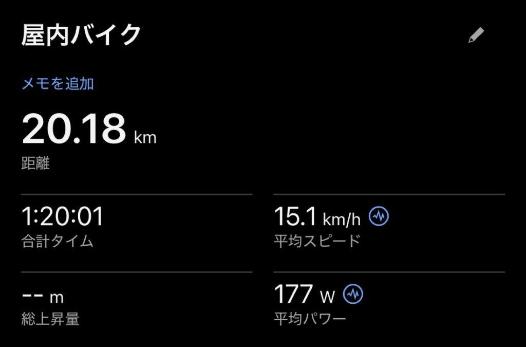 前々から思っていたのですが、インドアバイク練やった時の距離がおかしい。