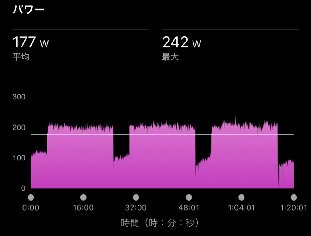 今日は1時間20分でこのメニューやっても20km程度。