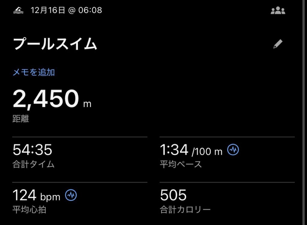 キツいけど、タイムを意識して追い込み気味にしないとスイムは早くならないなと感じます。