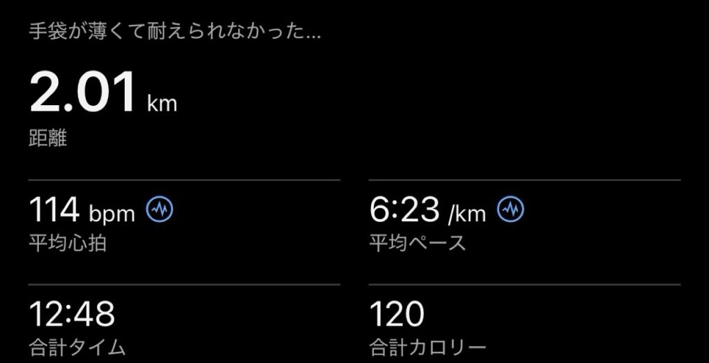 2026年1月2日 / 最終更新日時 : 2026年1月3日 ならゴー ブログ 寒過ぎ 今日は朝しかトレーニング時間が取れないので、起きてすぐ走りに出ると雪… チョー寒い。 ちょっと前に行ってた長野に比べると全然な感じなんですが、もう体はこちらの気候に慣れていて辛〜い。 それでもトコトコと走ってれば、温かくなるだろうとスタート。 しかし、体はいいが、手先が冷たい。 装着していたランニンググローブは薄手のもので、手をグーとかにしてもどうにもならない。 2kmで耐えられなくなり、終了… 今年の初ランは、なんとも情けないスタートになりました。 Follow me! FacebooktwitterHatenaPocketCopy