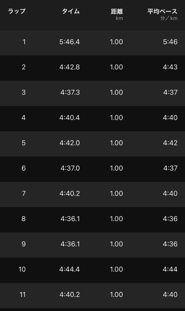 でも想定していたキロ4’30を切るまでのペースには上げられない。うむむ。