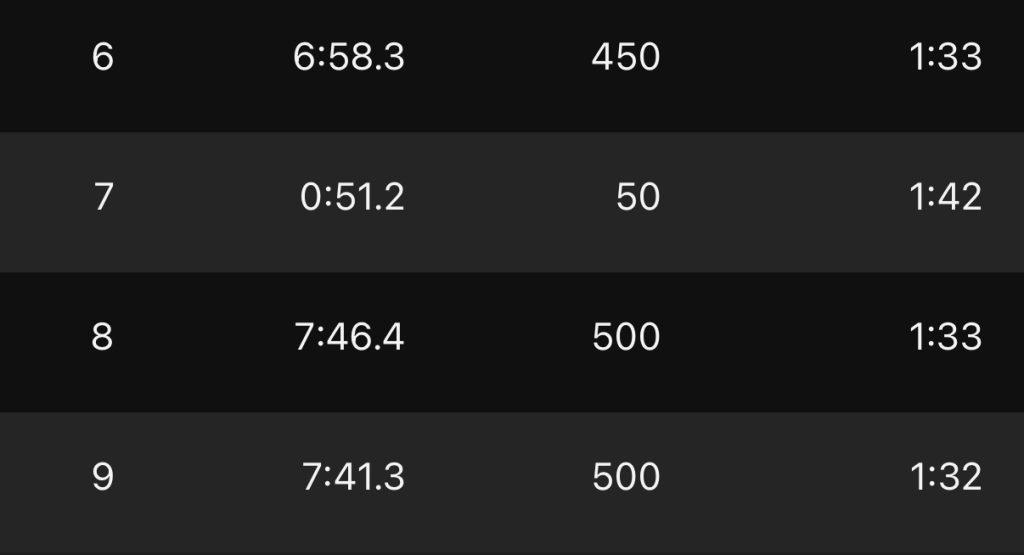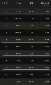 1本が少し長めの距離なので、100m1’35ペースくらいかと思ったら、1’32〜33と思ってたより良いペースでいけた\(^-^)/